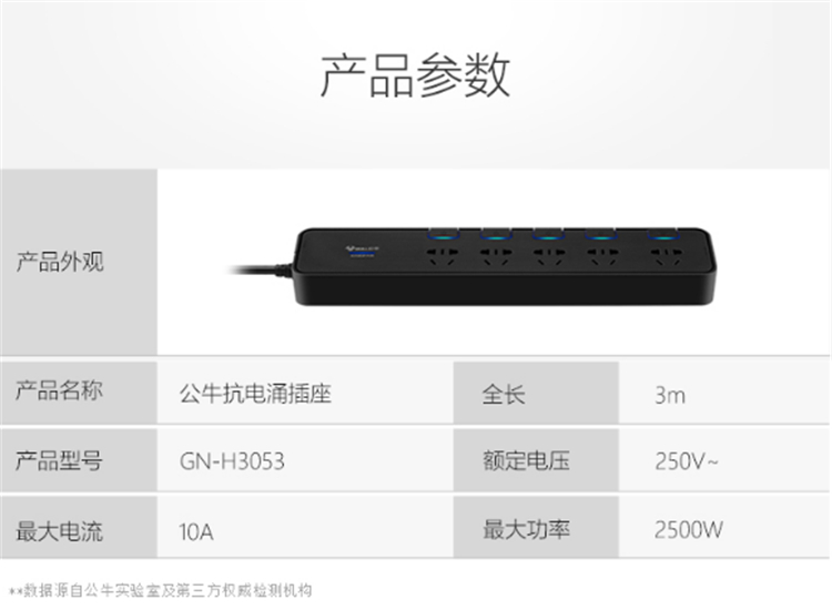 下拉滾動條,歡迎使用預置的圖文模板。公牛(BULL)抗電涌抗浪涌插座 5位分控全長3米 保護智能電器 GN-H3053