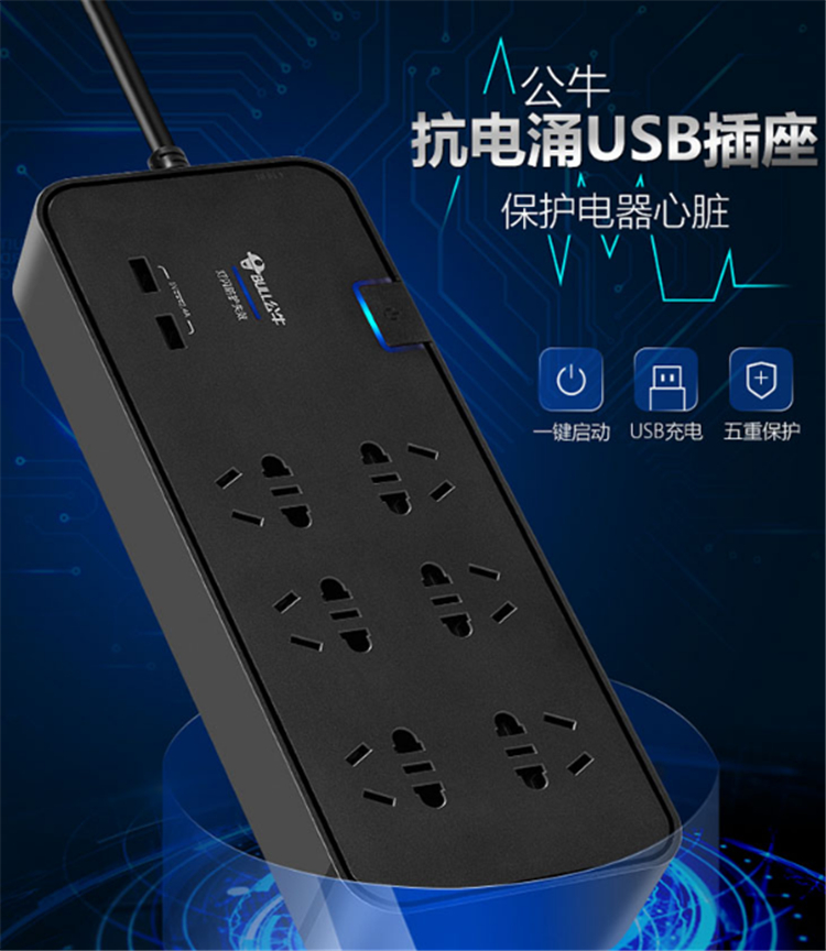 公牛(BULL) GN-H306U持久的抗電涌保護智能電器 不間斷吸收尖峰電流