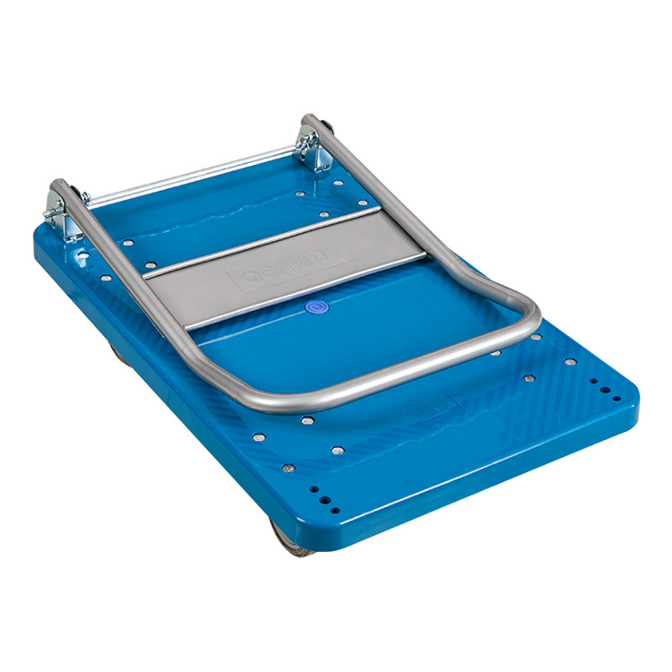 平板車手推拉貨車采用藍色PP料,環保,耐沖擊,耐腐蝕,防摔有韌性,堅固耐用