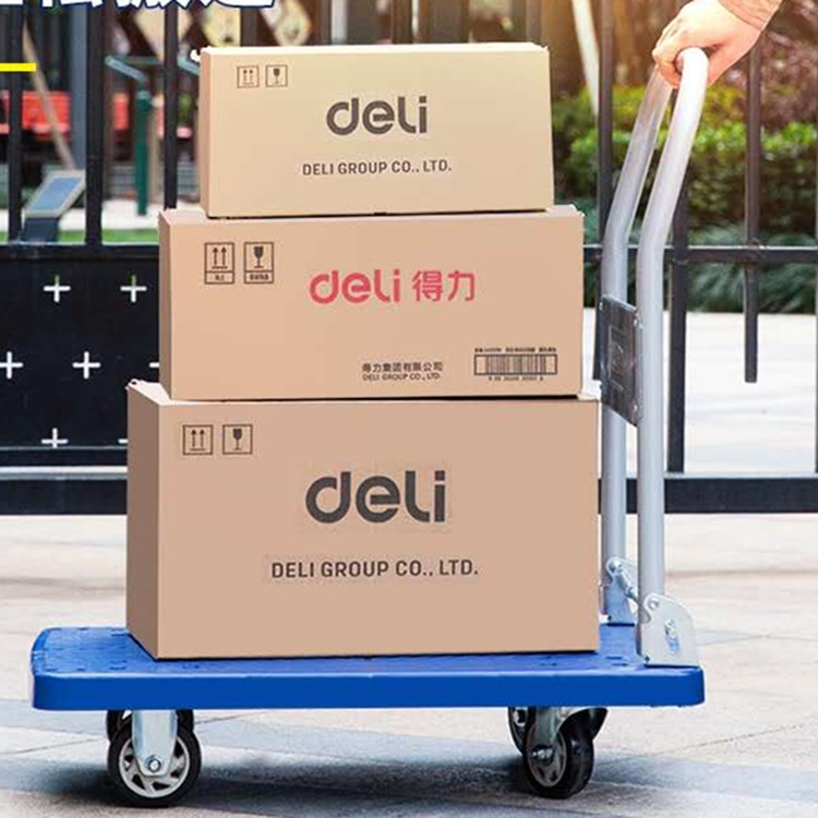 得力平板車手推拉貨車四輪搬運小拖車承重約600斤