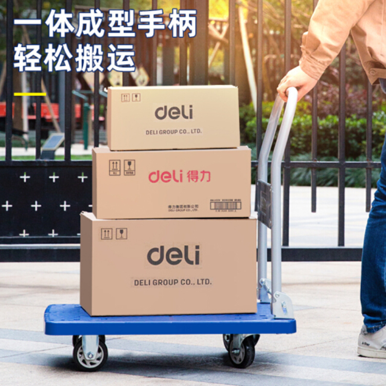 得力(deli) 折疊平板車耐用手推車拉貨車小拖車四輪搬運車73x47cm承重約300斤