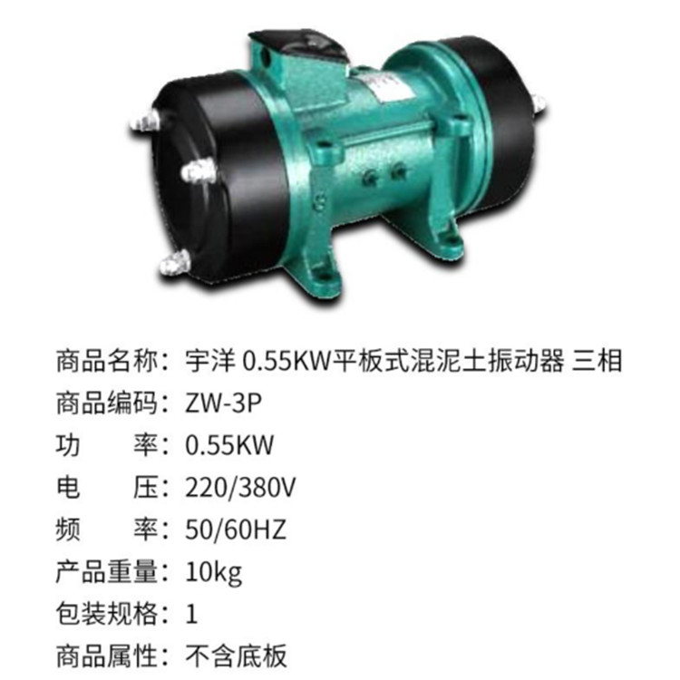 宇洋 0.55KW平板式混泥土振動器三相ZW-3P是廣泛使用于道路、橋梁、隧道、樓層基礎和各種混凝土梁柱及預制構件現場澆注施工的重要工具。