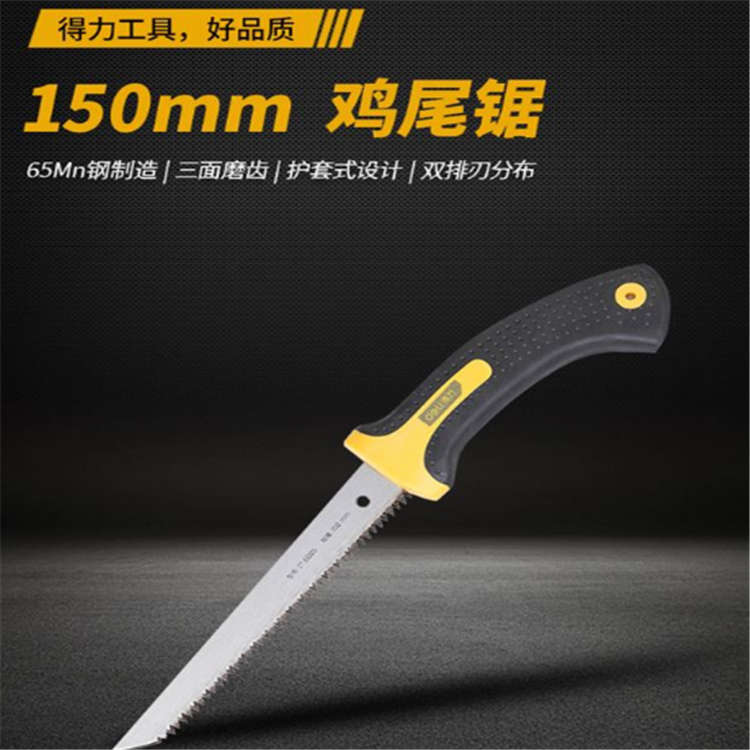 得力雞尾鋸兩面磨齒、雙排刃分齒,表面高頻淬火處理,鋸割鋒利。