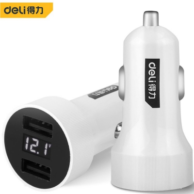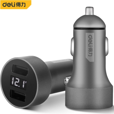 得力車載USB充電器數顯車載USB充電器通用多功能智能手機快充充電器