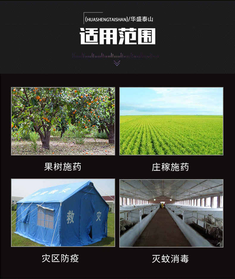 適合農業及經濟作物等多方面的病蟲害防治,也適合廣大農藥生產企業用來農藥實驗、推廣、贈品的使用。