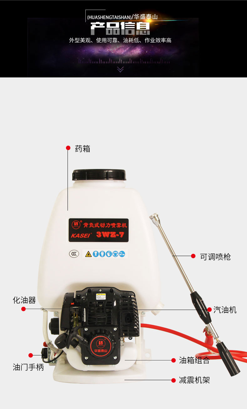 華盛泰山3WZ-7動力噴霧器四沖程背負(fù)式高壓噴霧機(jī)大棚打藥機(jī)農(nóng)用