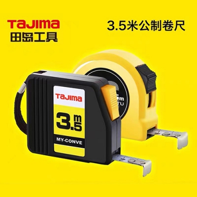 日本田島卷尺3.5米/5米/5.5米公制雙面刻度鋼卷尺盒尺木工測量工具