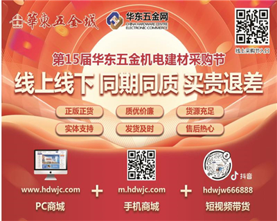 數字化賦能第15屆華東五金機電采購節-營銷升級以節為媒,共創商機。中國百強市場華東五金城,喊你來訂貨啦!秉承“讓客戶更賺錢,讓采購商更方便”的經營之魂,華東五金城第15屆五金機電建材采購節在4月24日-4月26日舉行。華東五金城此次采購節線上線下合力促進五金機電建材產品的采購交易,1000多家生產廠商、1000多個知名品牌、25萬多種規格型號的五金機電建材產品,恭候全國客商前來洽談合作。打造營銷新生態鏈,線上線下服務引流雙引擎華東五金城第15關注:2312021-04-20