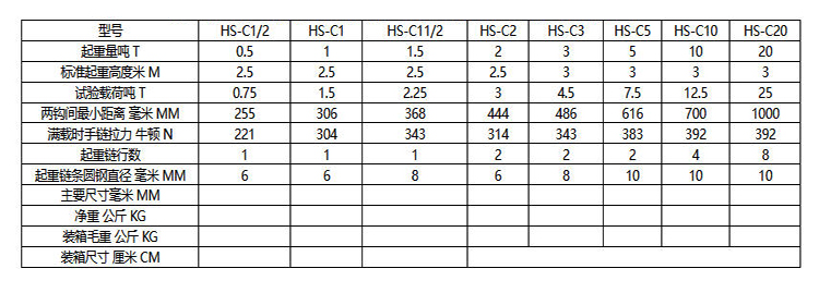 HSY手拉葫蘆各種型號的參數為您參考。