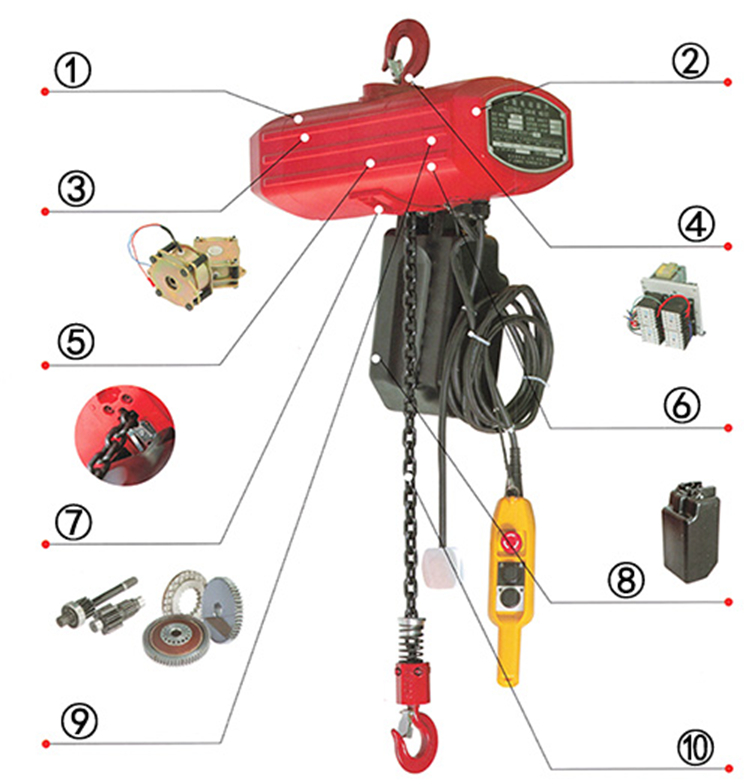 電動葫蘆起重鏈條采用優質合金鋼,鏈條試拉可以達到8倍破斷,安全系數高。