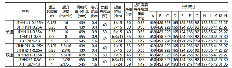 JTHH型三相單鏈環鏈電動葫蘆參數表