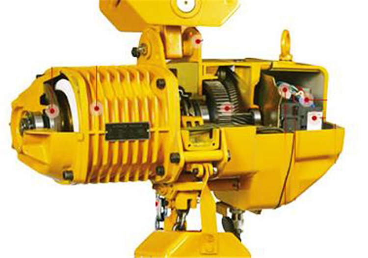 固定式環鏈電動葫蘆高強度鏈條:采用進口FEC80熱處理合金鋼鏈條。