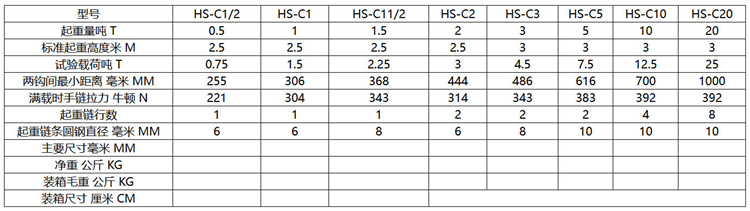 HS-C型手拉葫蘆主要機件選用鋼材制造,鏈條采用800Mpa