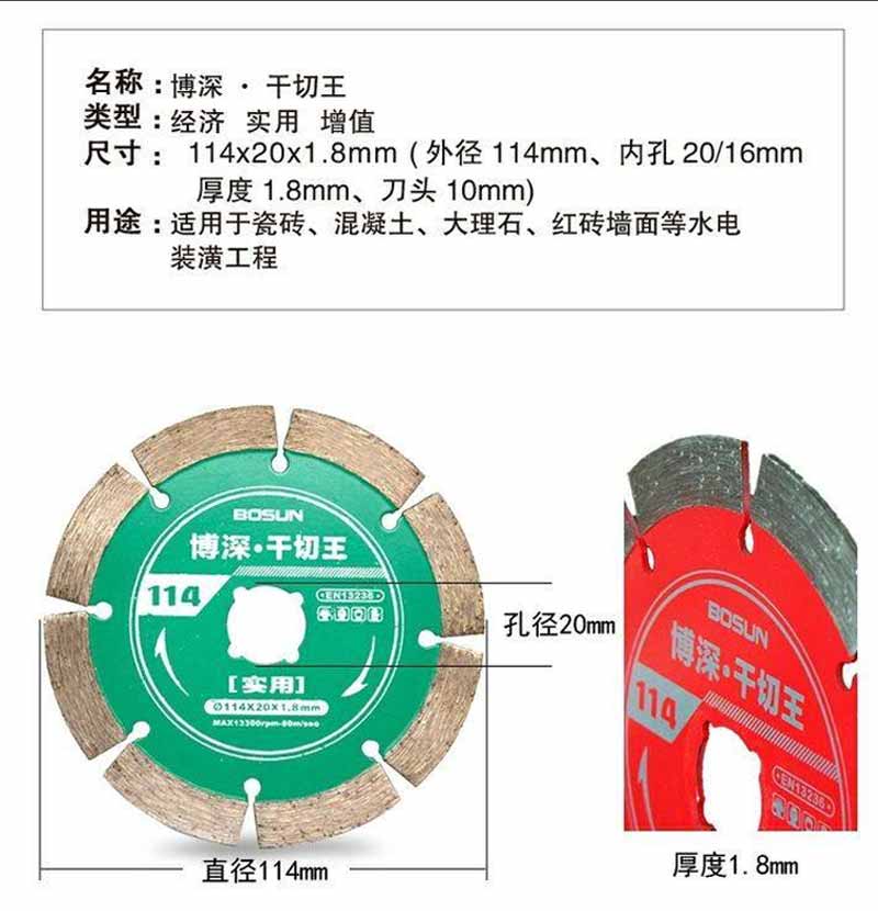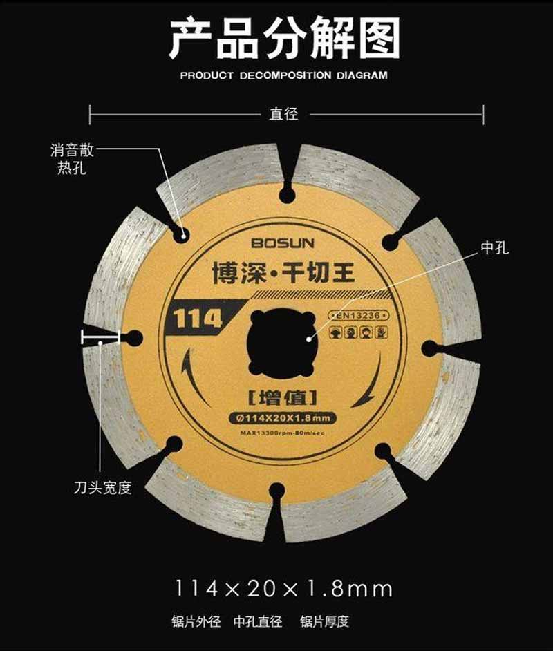 博深金剛石瓷磚切割片大理石玻化磚刀片干切專用石材開槽鋸片