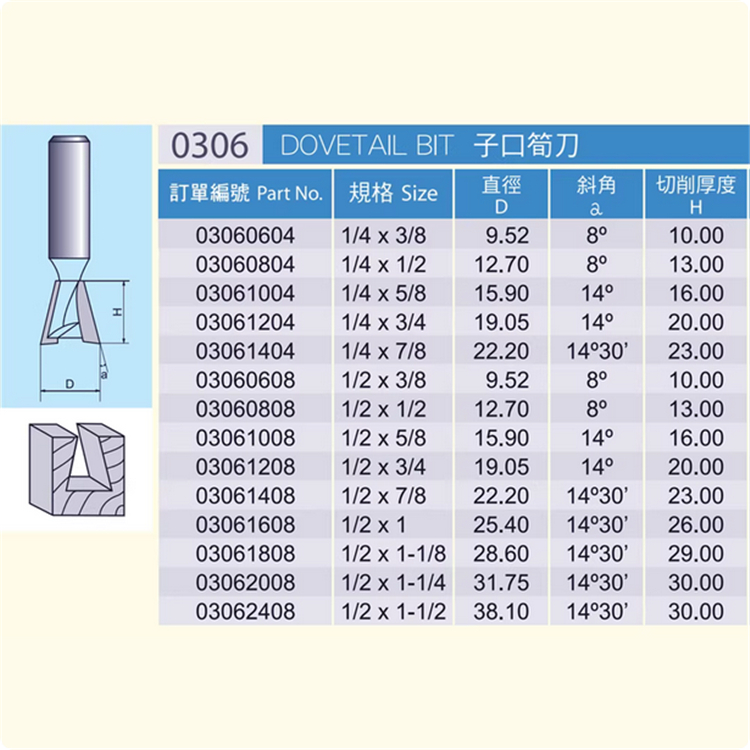 虎鯊0306子口旬刀燕尾刀開隼槽木工銑刀