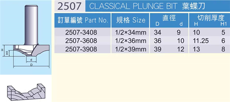 虎鯊2507葉蝶刀 木工家具櫥柜吸塑門板花式線條開槽修邊刀
