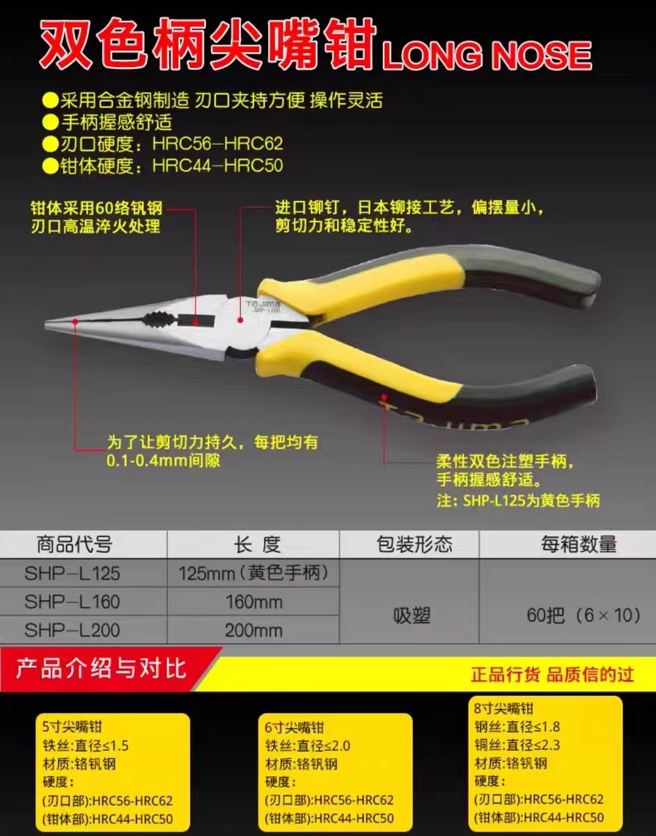 tajima/田島尖嘴鉗子5寸6寸8寸合金鋼釣魚鉗耐用正品