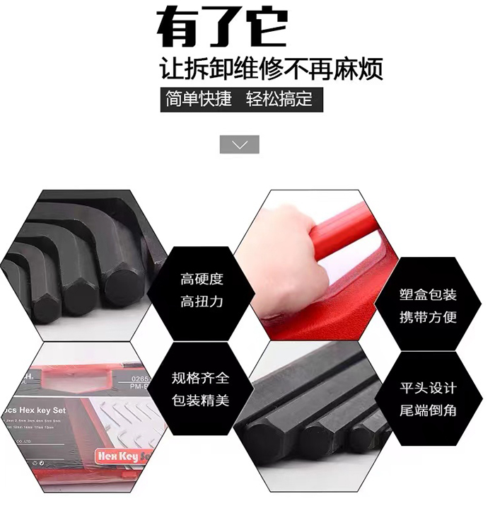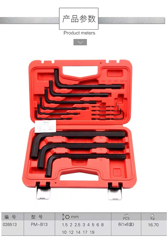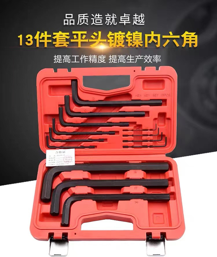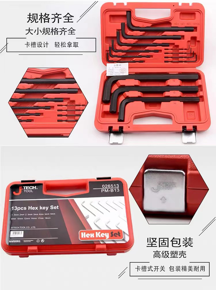 Jetech捷科工具平頭鍍鎳黑色內六角扳手六角板子PM-B13套裝