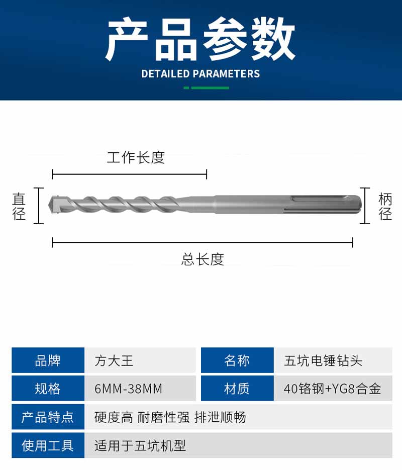 方大王五坑電錘鉆頭