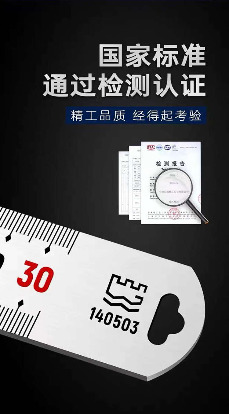 長城精工鋼直尺一米鋼尺1米15cm不銹鋼鋼板尺600mm加厚剛尺子30cm