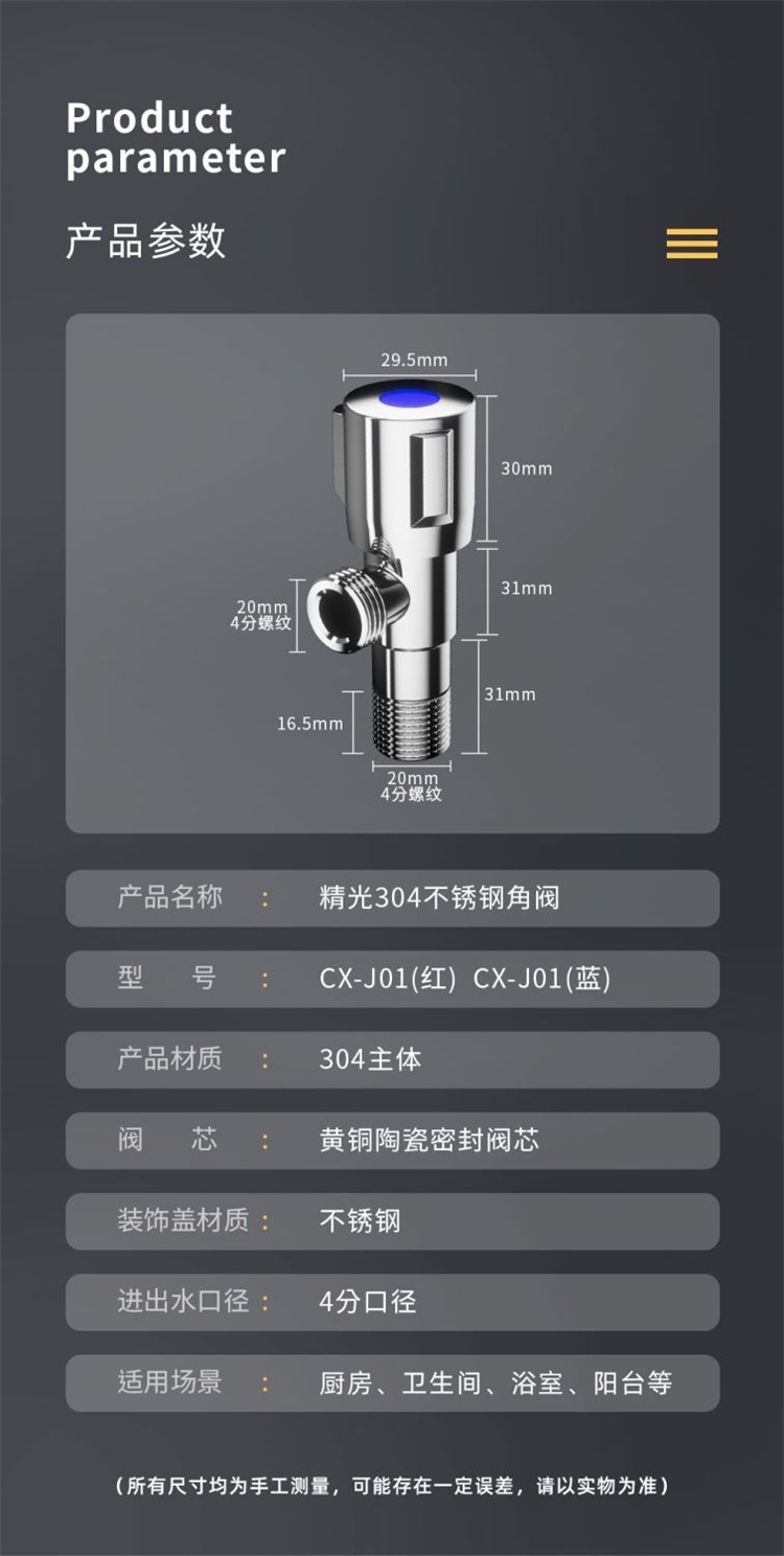 中財不銹鋼角閥加厚防爆冷熱三角閥 馬桶熱水器進水閥4分開關水閥