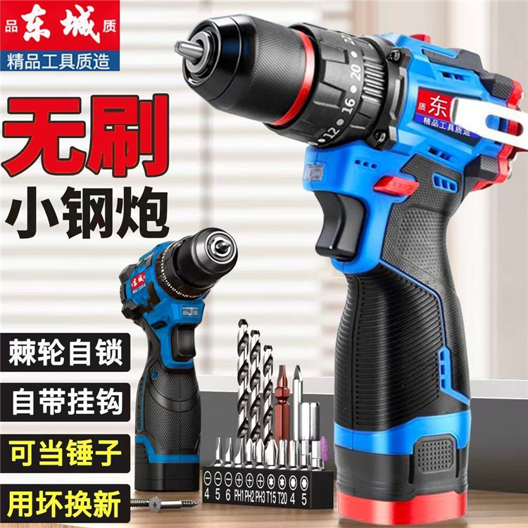 東城棘輪無刷手電鉆小鋼炮家用電動(dòng)螺絲刀鋰電多功能三合一沖擊鉆