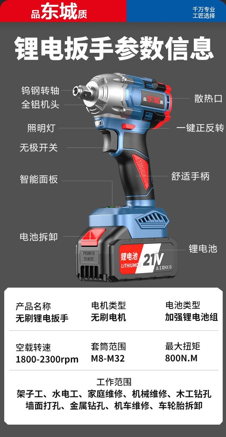 東城無刷電動扳手鋰電池充電式扭力沖擊架子工木工汽修多