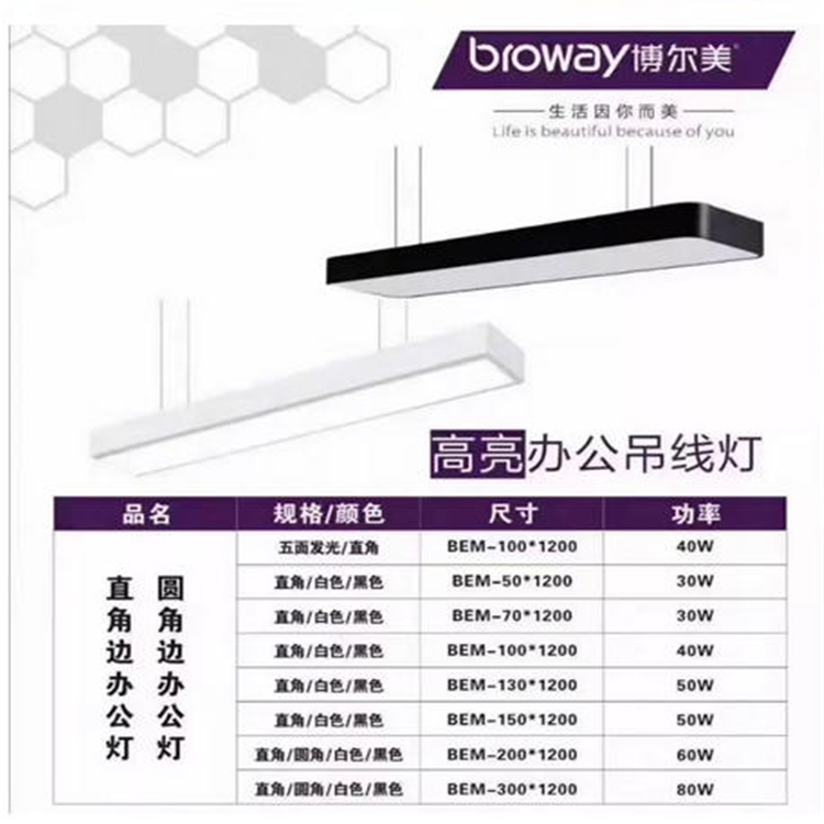 博爾美LED辦公燈長條燈方通專用超市健身房燈辦公室平板燈吊線燈
