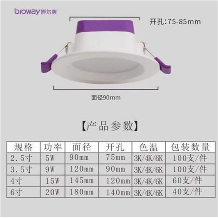 - 型號名稱3寸9瓦筒燈(中性光4000K)