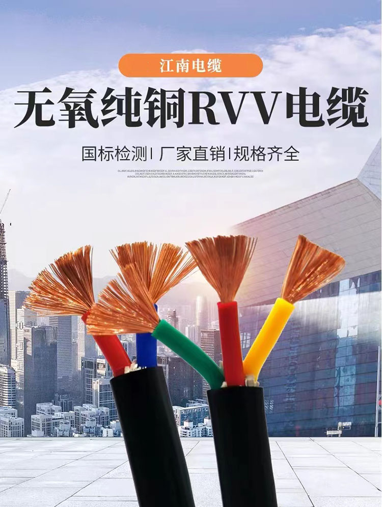 江南電纜銅芯ZRC-RVV電源電線234芯1.5 2.5 4 6 10平方國標護套線
