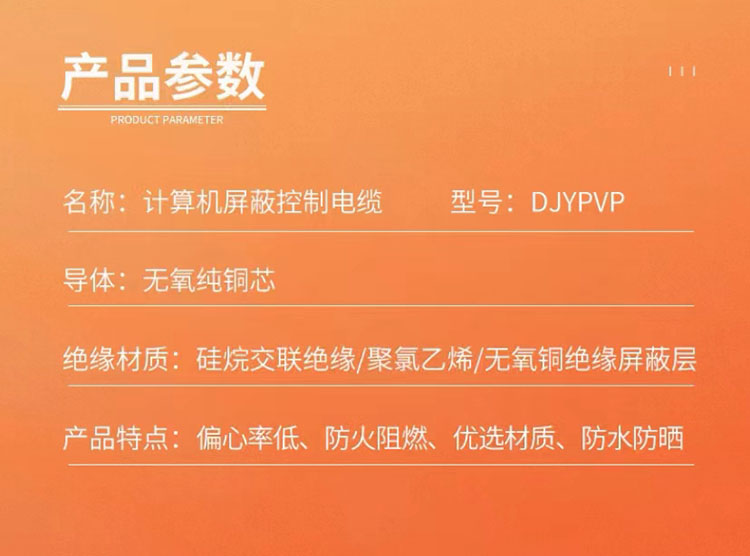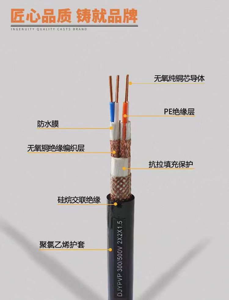 絕緣材質(zhì):硅烷交聯(lián)絕緣/聚氯乙烯/無氧銅絕緣屏蔽層