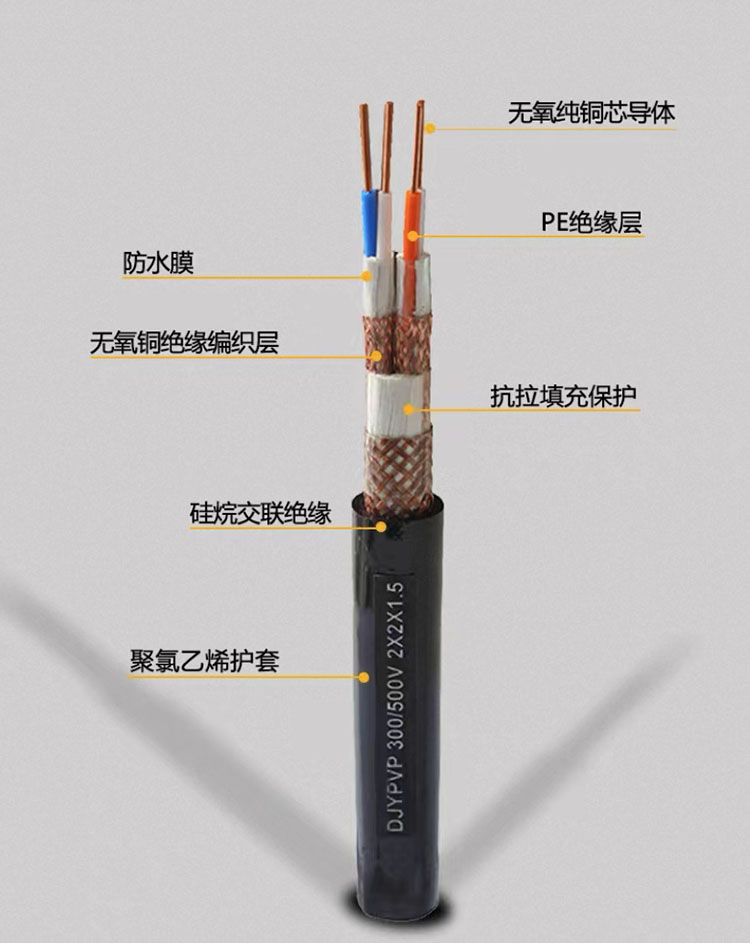 絕緣材質:硅烷交聯絕緣/聚氯乙烯/無氧銅絕緣屏蔽層