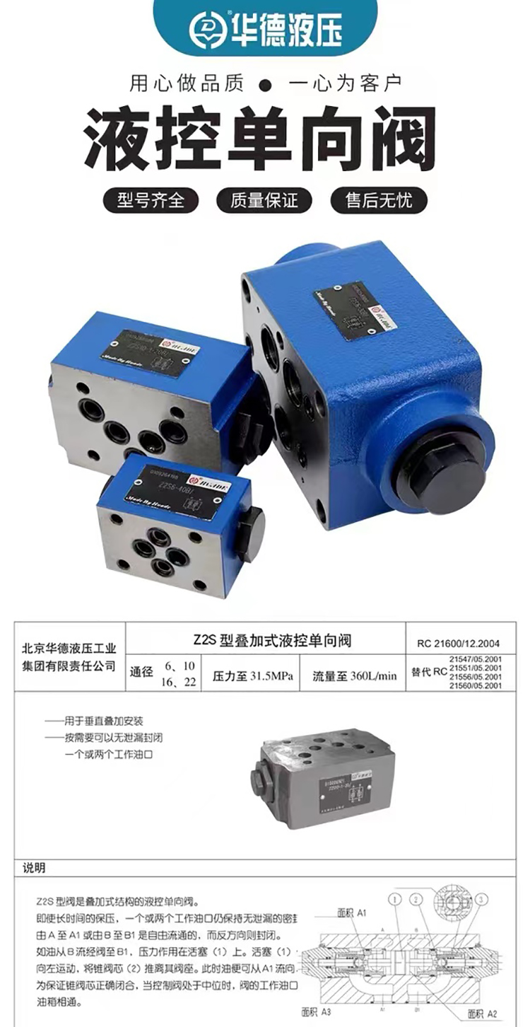 華德液壓元件Z2S6-40B保壓鎖Z2S10-1-20B液控單向閥Z2S16-30B Z2S22
