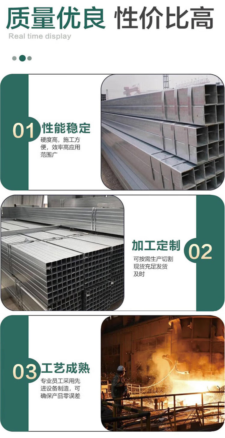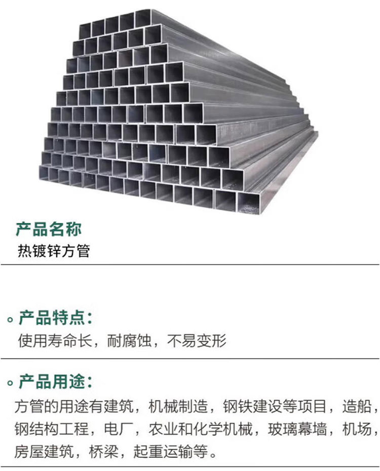 Q235熱鍍鋅矩管 矩形方管 防銹鍍鋅鋼管 建筑管材