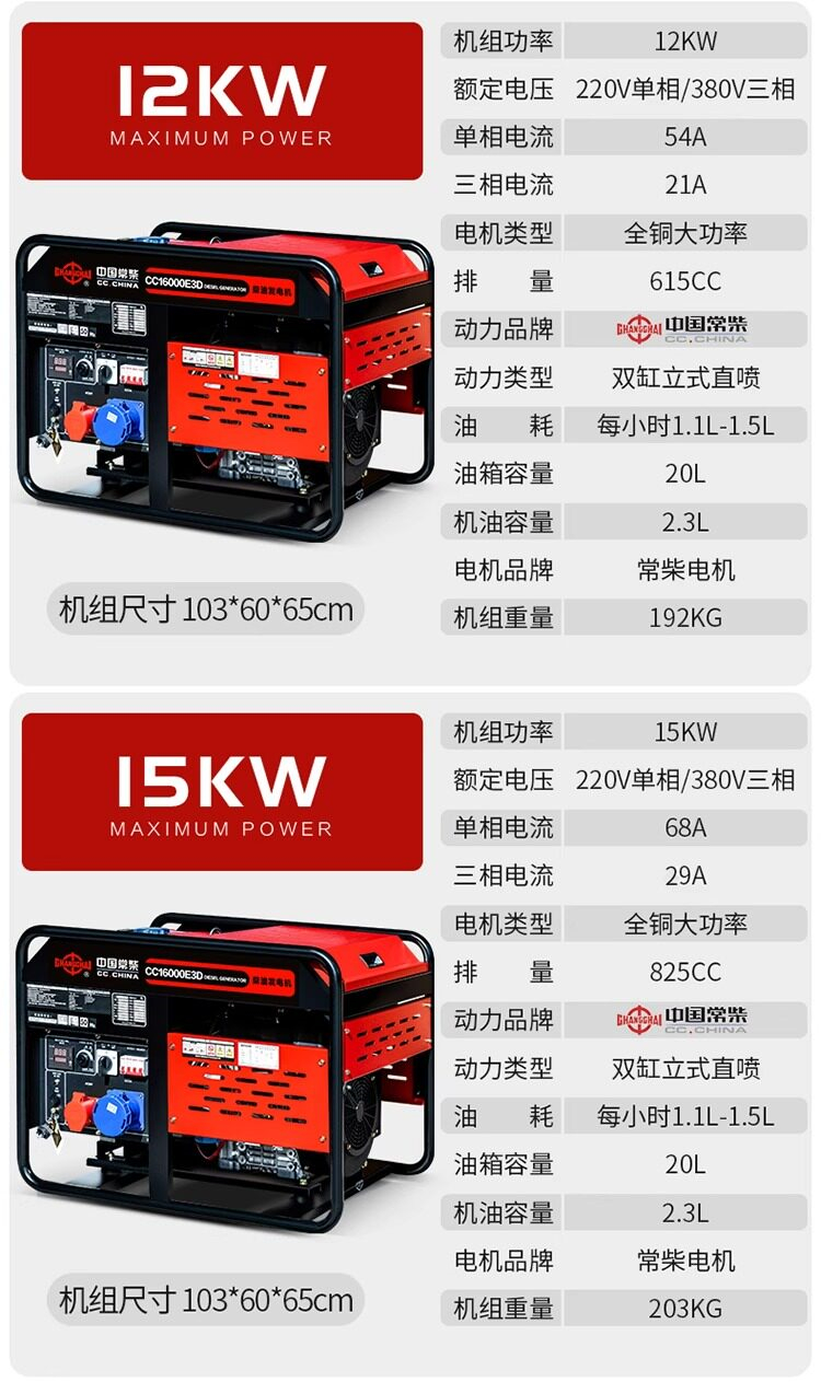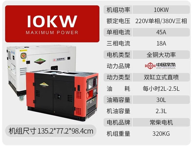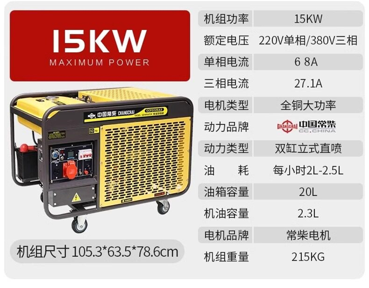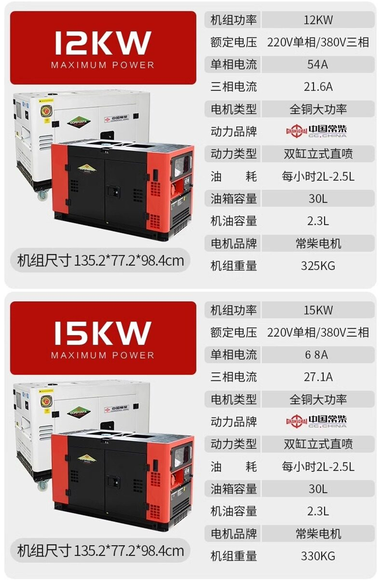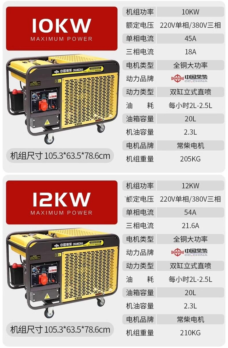 柴雙缸柴油發電機組家用10千瓦1215KW單相三相小型家用雙電壓