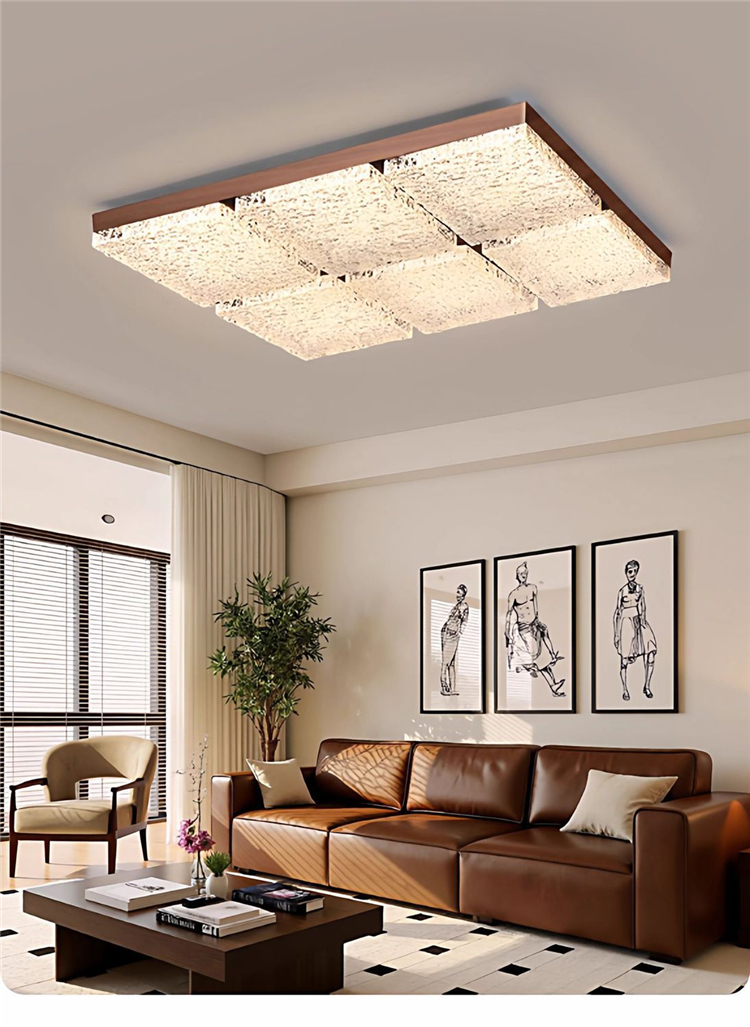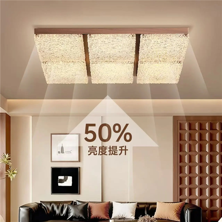法式中古風胡桃木輕奢吸頂燈2026新款冰裂紋客廳燈中山燈具
