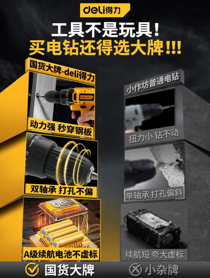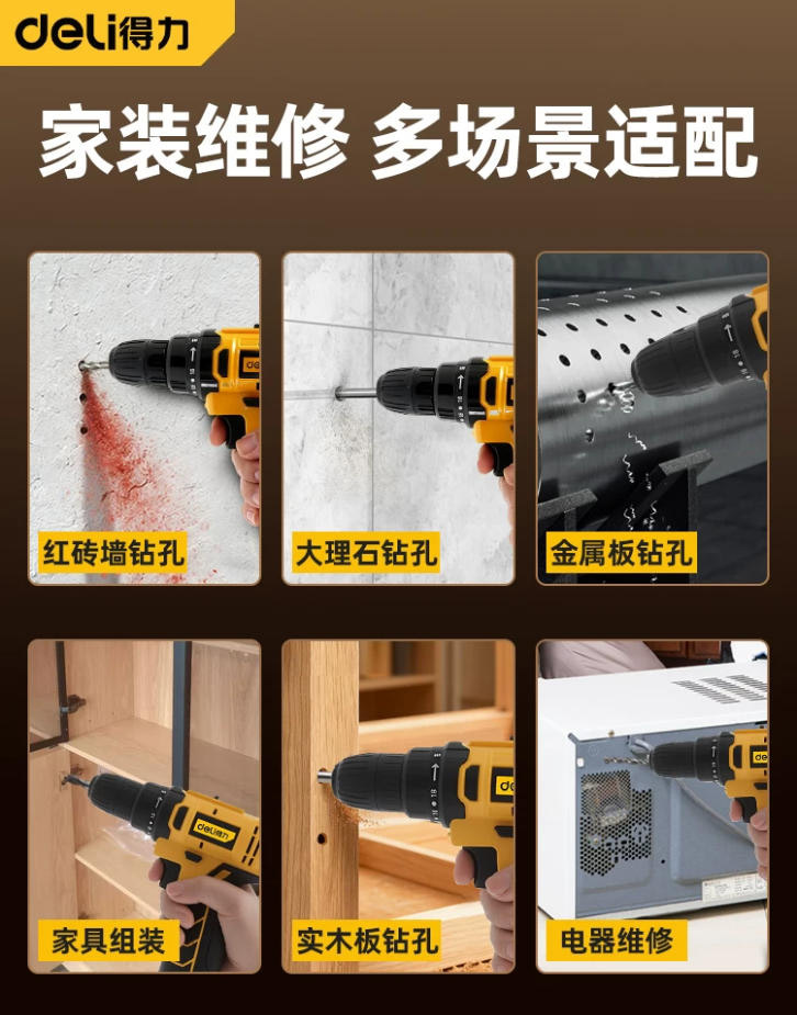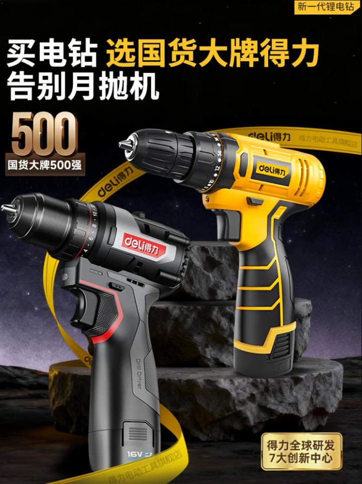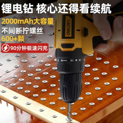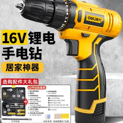 得力手電鉆16V鋰電手槍鉆多功能電動螺絲刀充電式鉆墻沖擊鉆電鉆