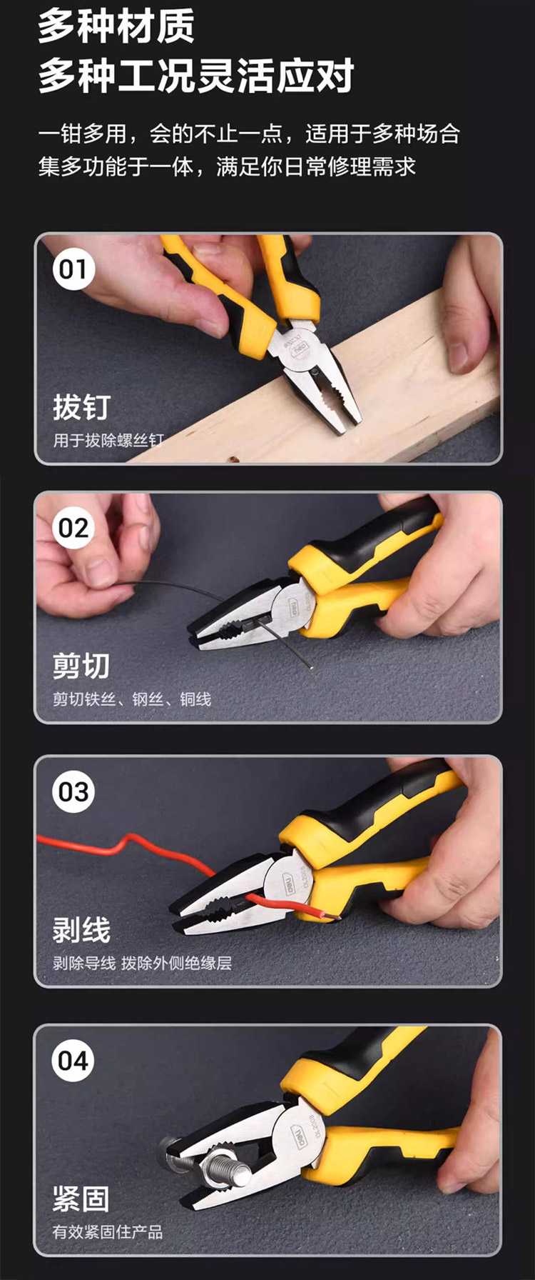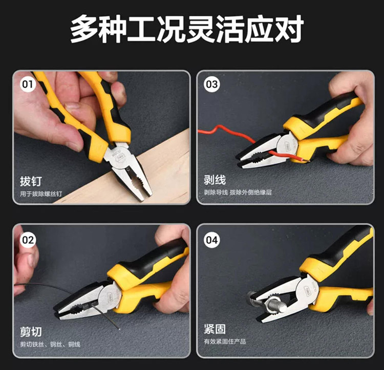 得力工具鋼絲鉗多功能工業級老虎鉗省力鉗子電工尖嘴鉗斷線平口鉗