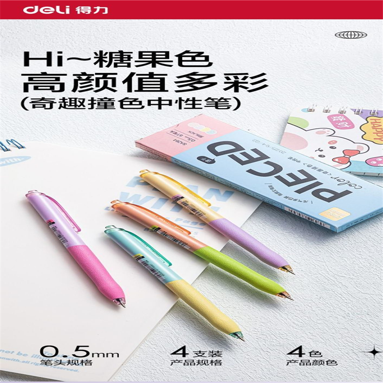 得力按動(dòng)中性筆學(xué)生筆高顏值st頭速干