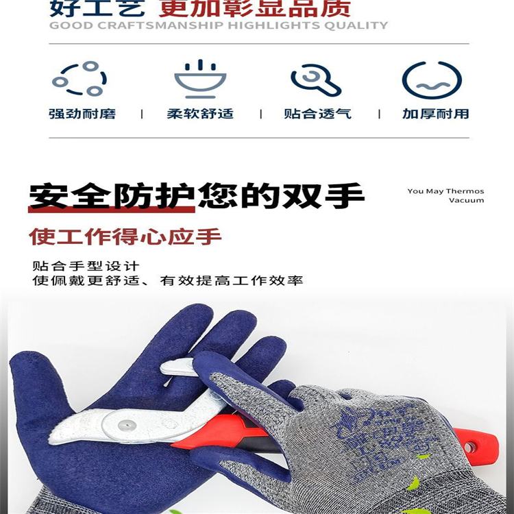 紅宇掌中星L895勞保手套防滑耐磨柔軟透氣乳膠皮發泡手套