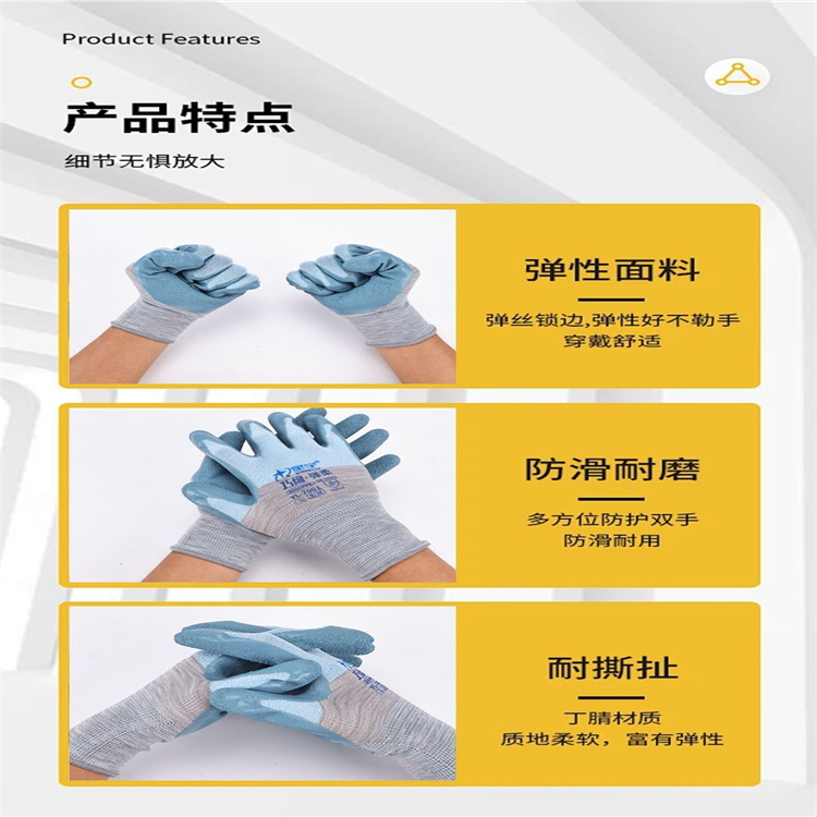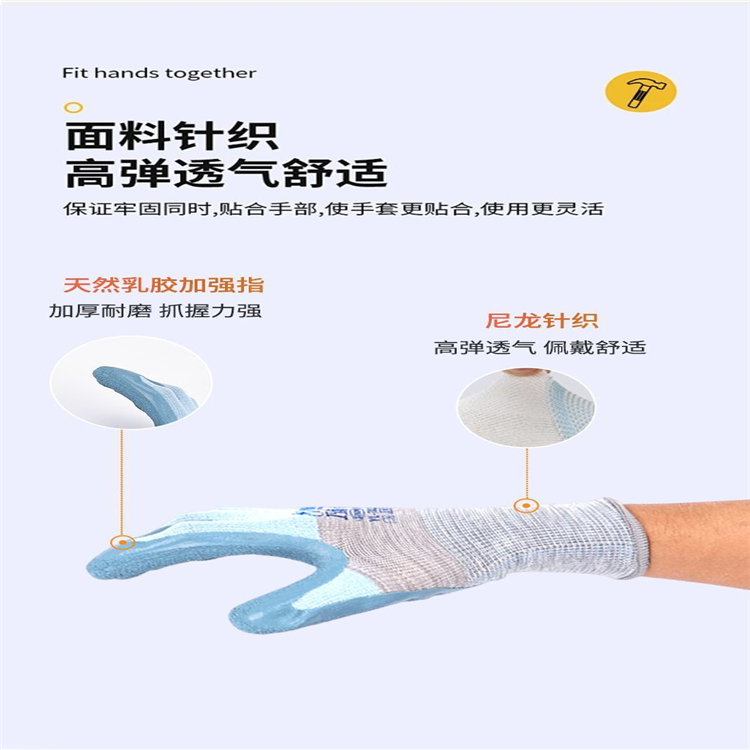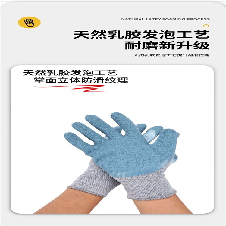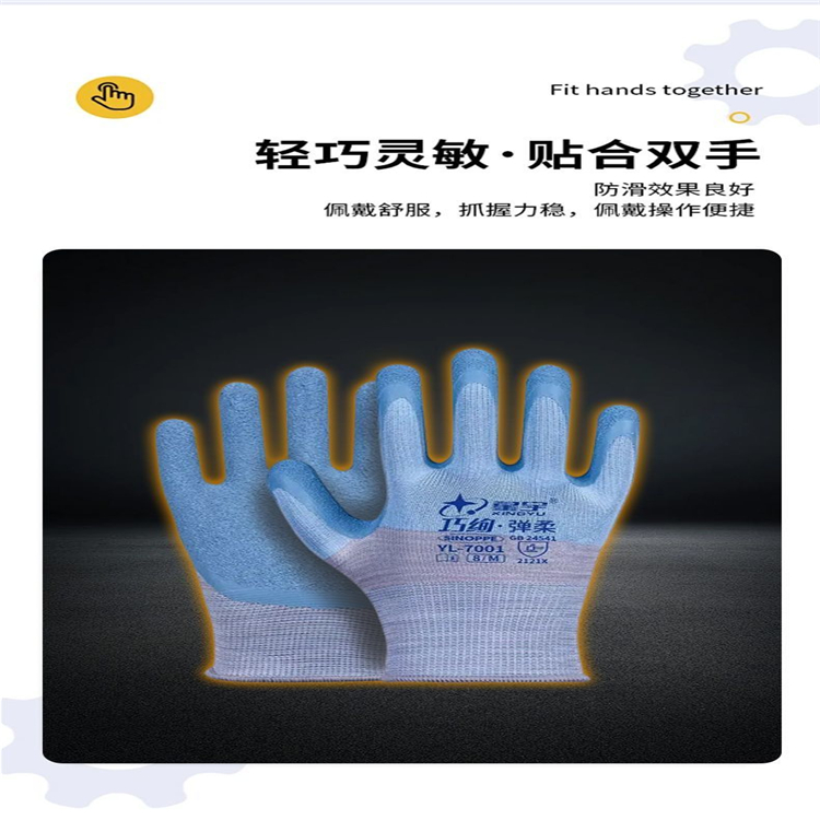 星宇7001女士勞保手套耐磨防滑帶膠浸膠乳膠防水壓紋