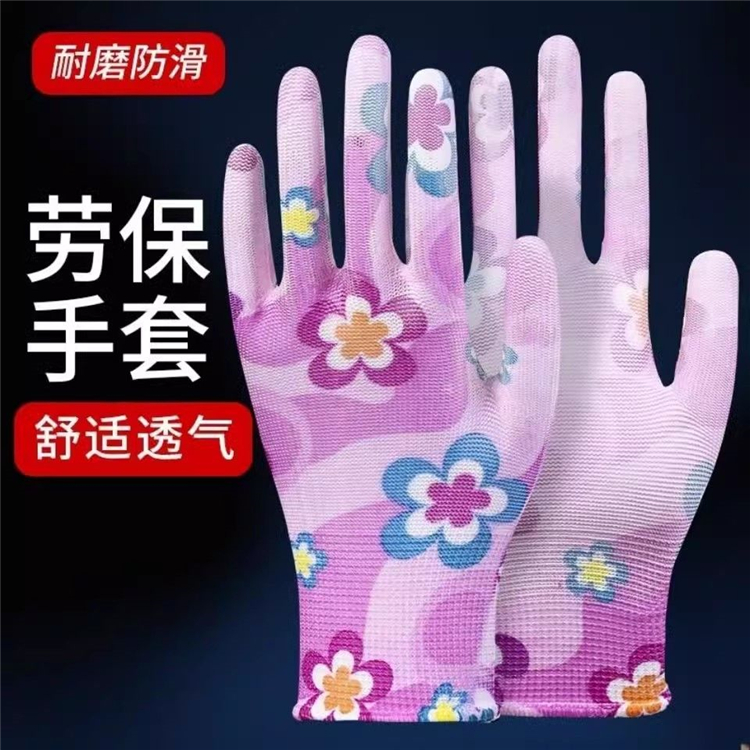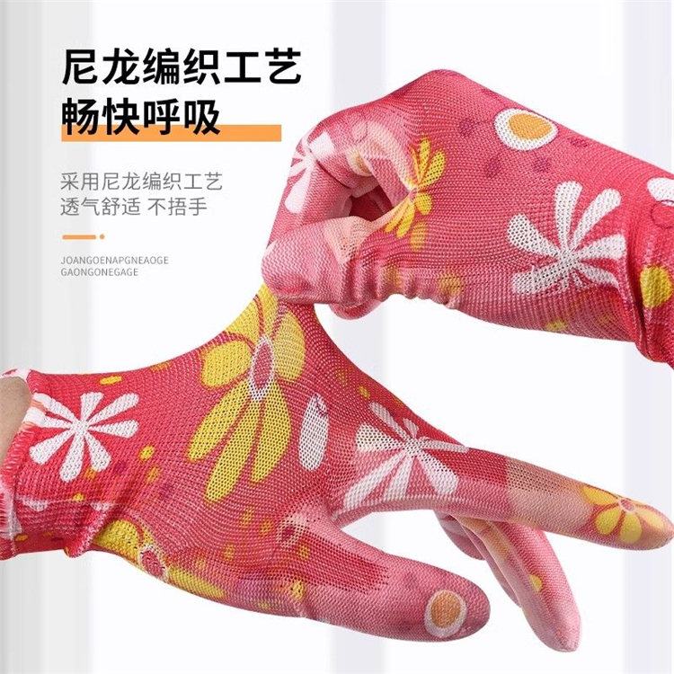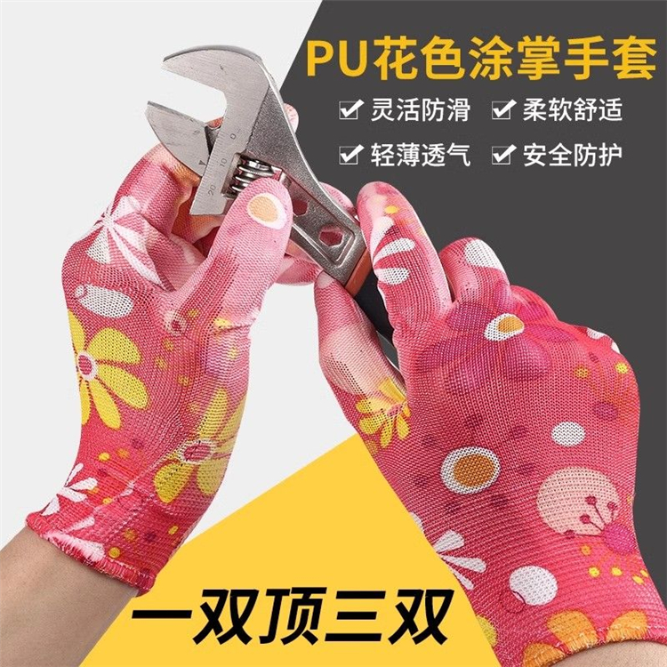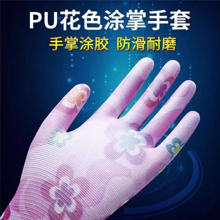 星宇花色PU勞保耐磨涂膠手套工作薄款涂掌防滑柔軟尼龍透氣